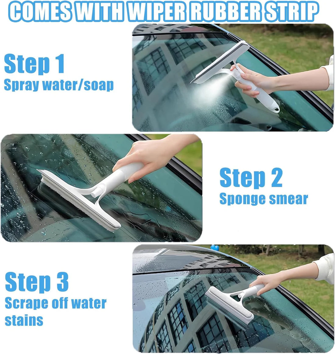 ClearSwipe 3-u-1 Prskalica sa Brisačem za Staklo – Multifunkcionalni Alat za Ogledala i Prozore