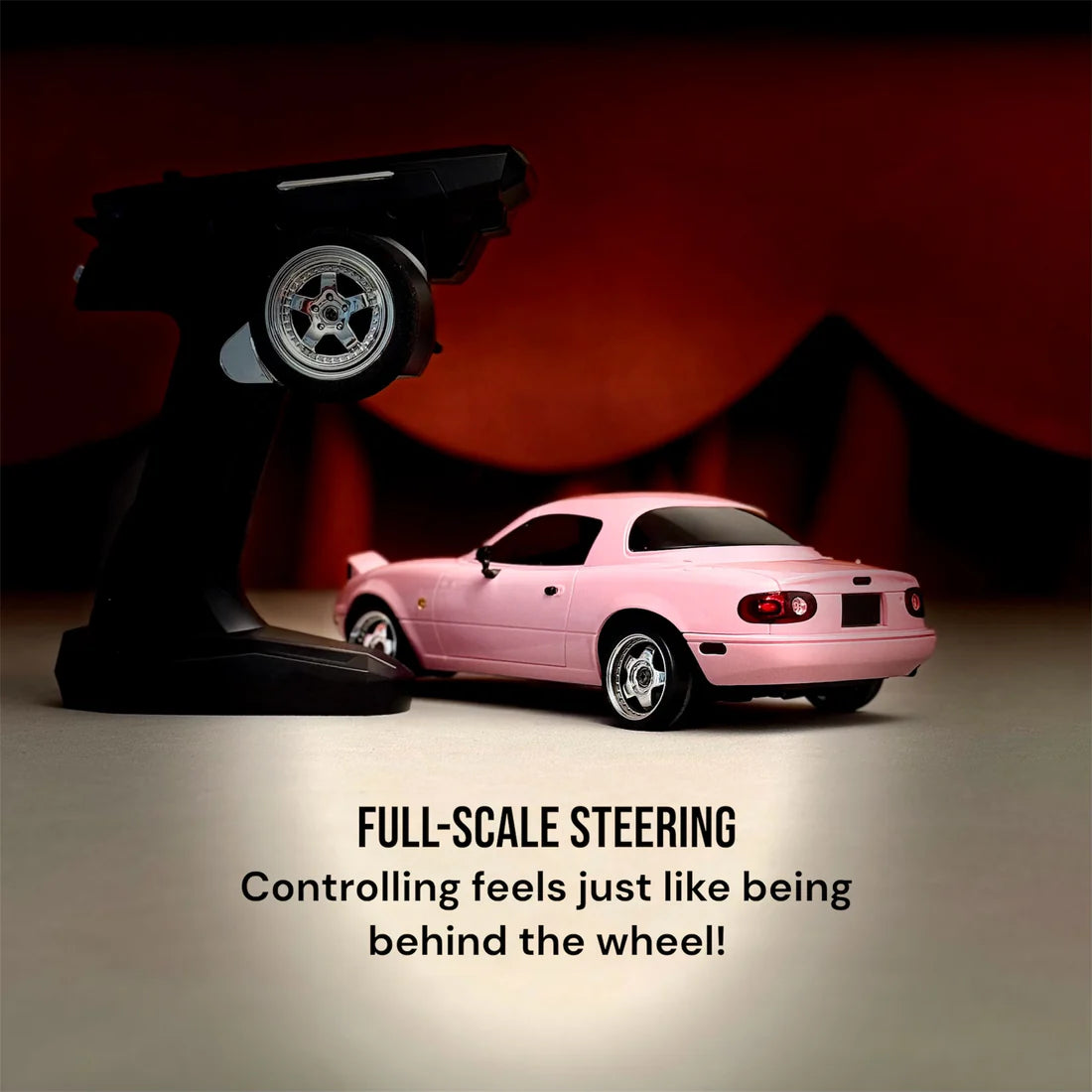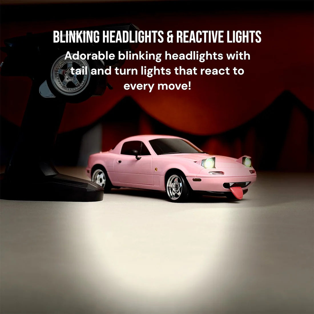 Dimenzije automobila su 23 × 10 × 11 cm, što ga čini idealnim i za početnike koji uče da driftuju, ali i za iskusne vozače koji žele da pokažu spektakularne poteze. U paketu dolaze RC auto, daljinski upravljač, punjiva baterija i odvojiva crtana usta za dodatnu dozu ličnosti.