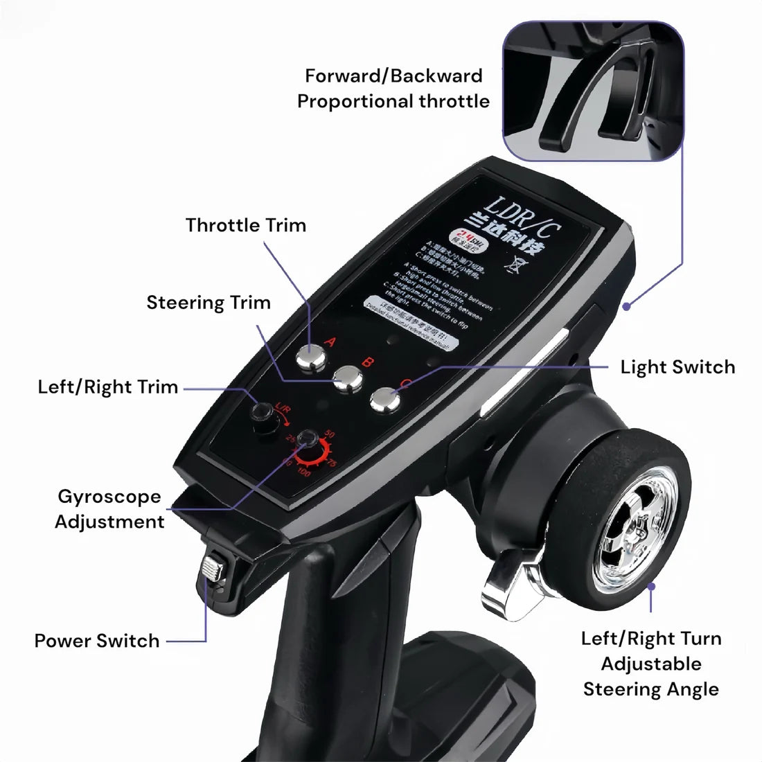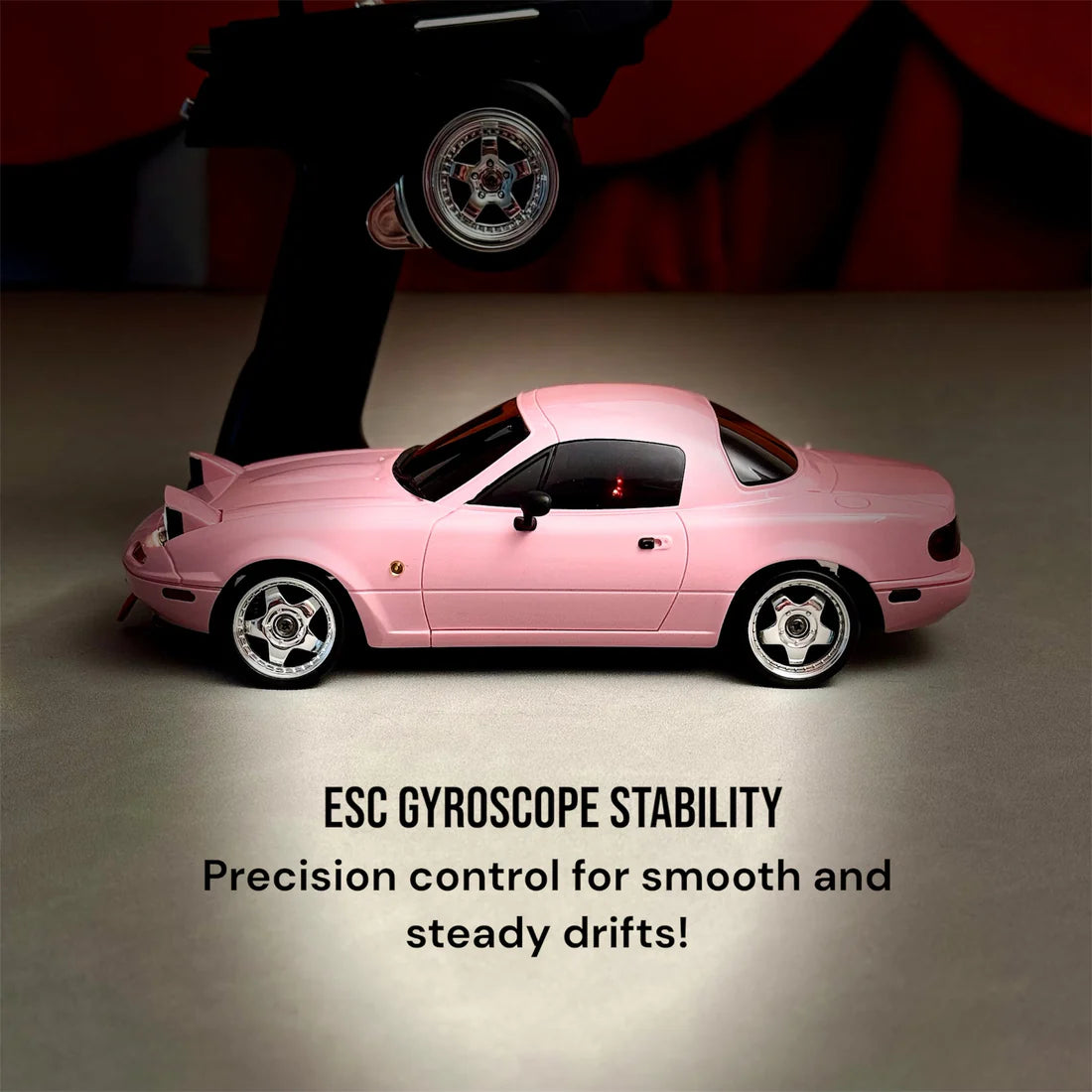 Opremljen je naprednim funkcijama kao što su high-performance ESC žiro, nezavisna suspenzija, full-scale upravljanje i metalna pogonska osovina za precizne i glatke driftove. Kuglični ležajevi poboljšavaju performanse, dok podesivi sistem nagiba i drift gume omogućavaju fino podešavanje za maksimalnu kontrolu.