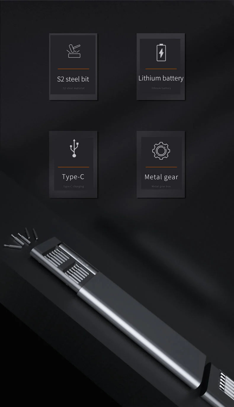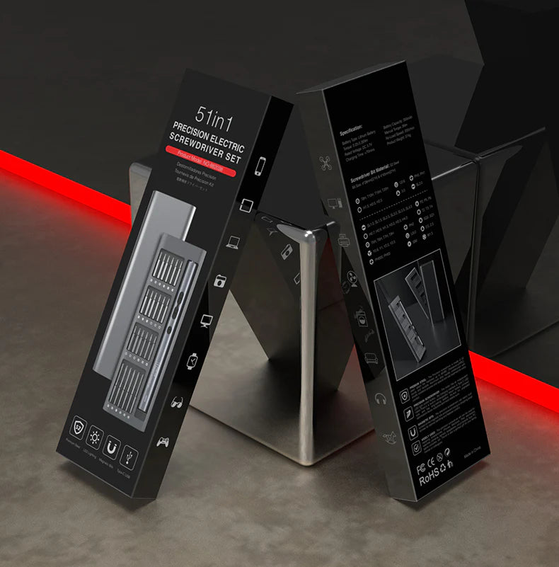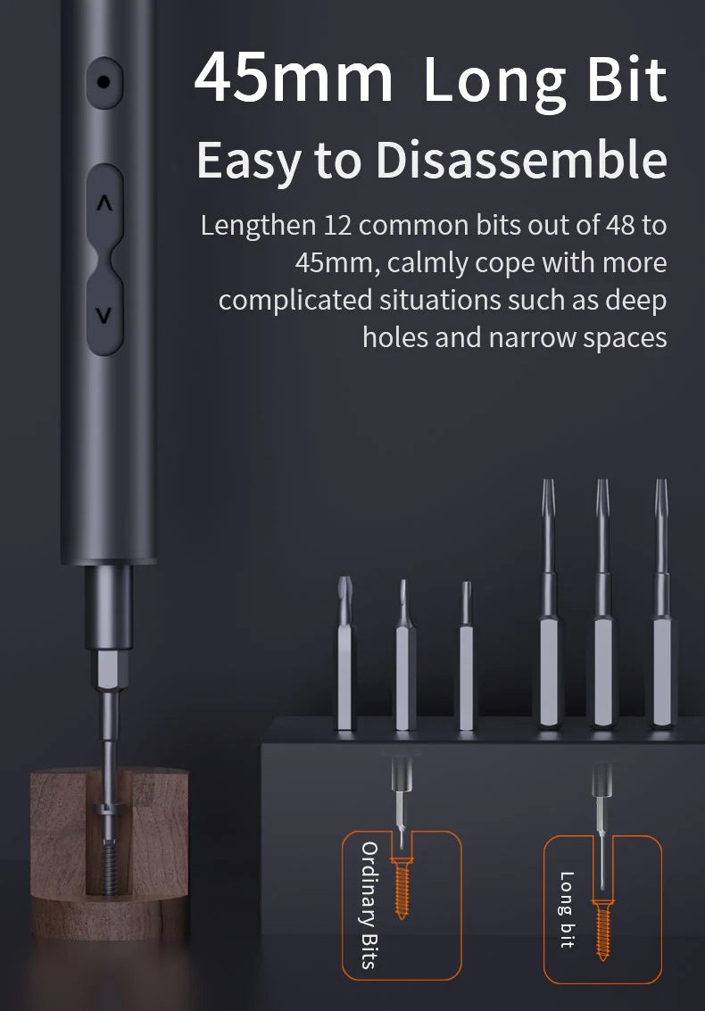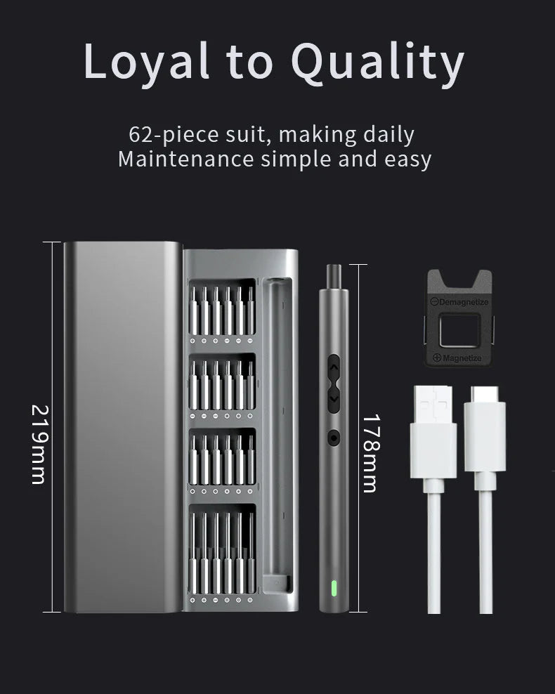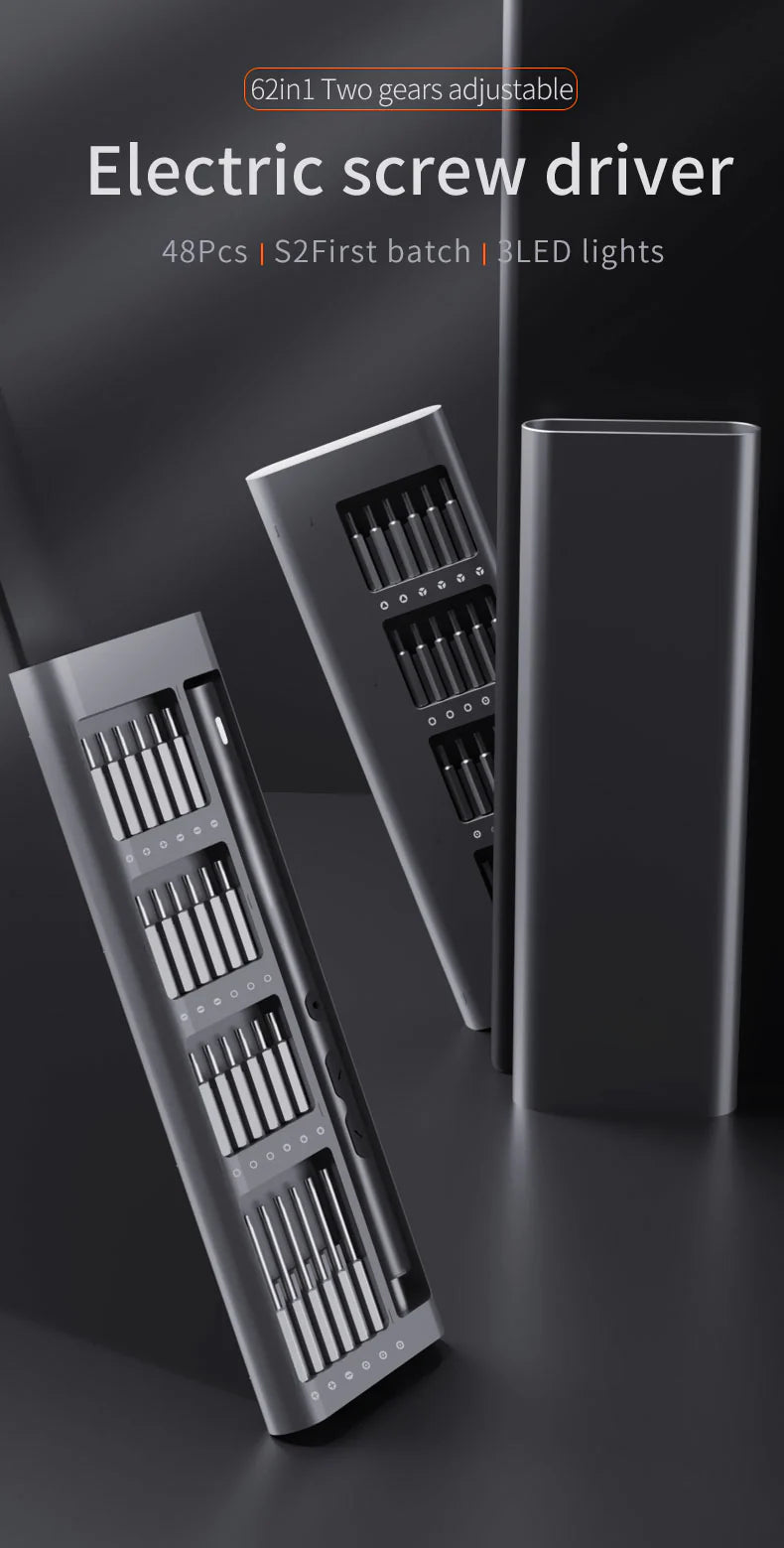 • 48 magnetnih nastavaka od S2 čelika – pokrivaju 19 kategorija šrafova za elektroniku, igračke, kućne uređaje i fine mehanizme.