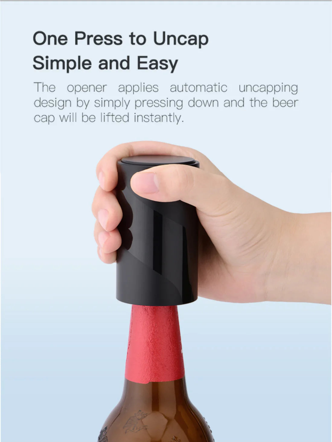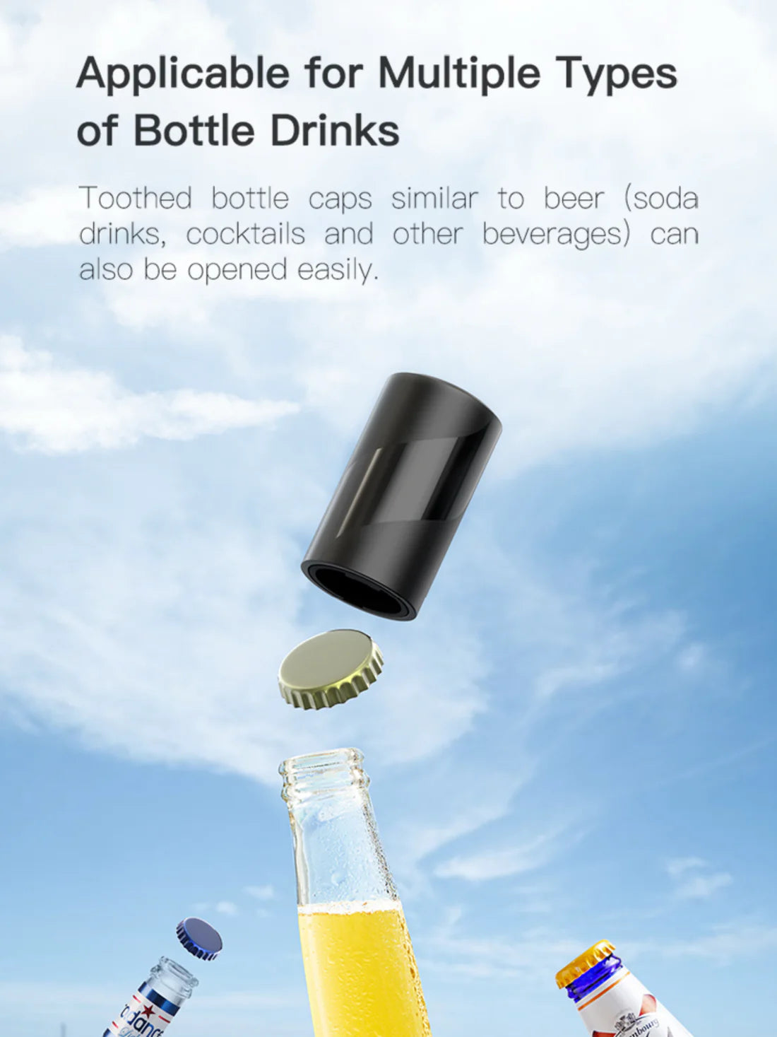 2 pritisna otvarača za pivo ili sok Otvorite flašu jednim pritiskom. Ugrađeni magnet zadržava čep bez savijanja – idealno za kolekcionare. Otvarači su izdržljivi, prenosivi i zabavni za korišćenje, čineći svaku proslavu još prijatnijom.