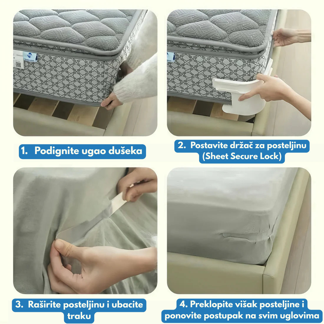 SheetSecure Lock – Nevidljivi Sistem za Fiksiranje Čaršava Bez Nabiranja-Držač posteljine