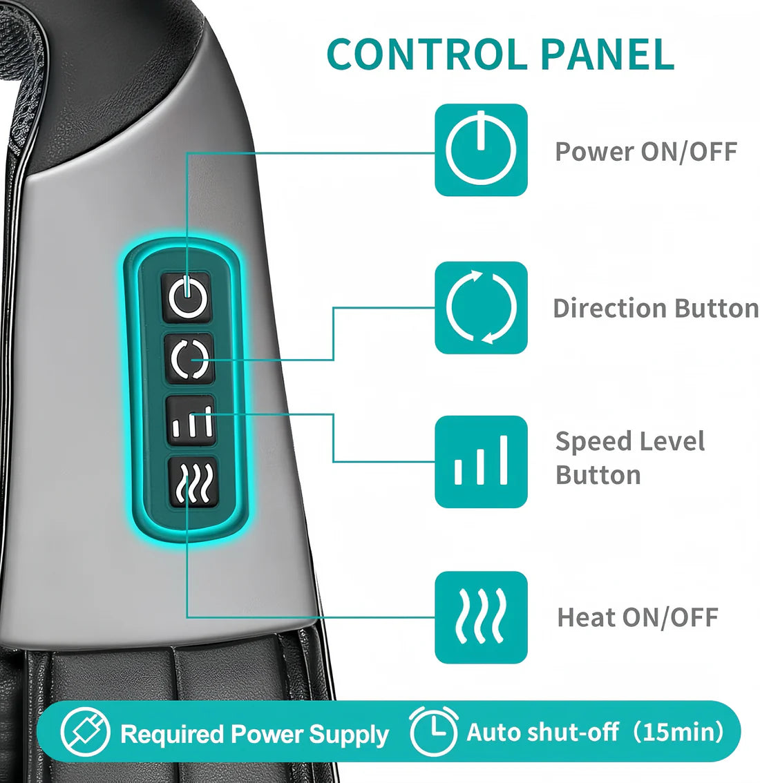 Masažer funkcioniše putem kabla – jednostavno ga priključite na standardnu utičnicu ili koristite dodatni adapter za automobil i uživajte u masaži gde god da ste. Napravljen je od visokokvalitetne PU kože i prozračne mrežaste tkanine, što ga čini izdržljivim, udobnim i lakim za čišćenje. Upravljačka tabla omogućava lako podešavanje jačine, smera rotacije i grejanja.